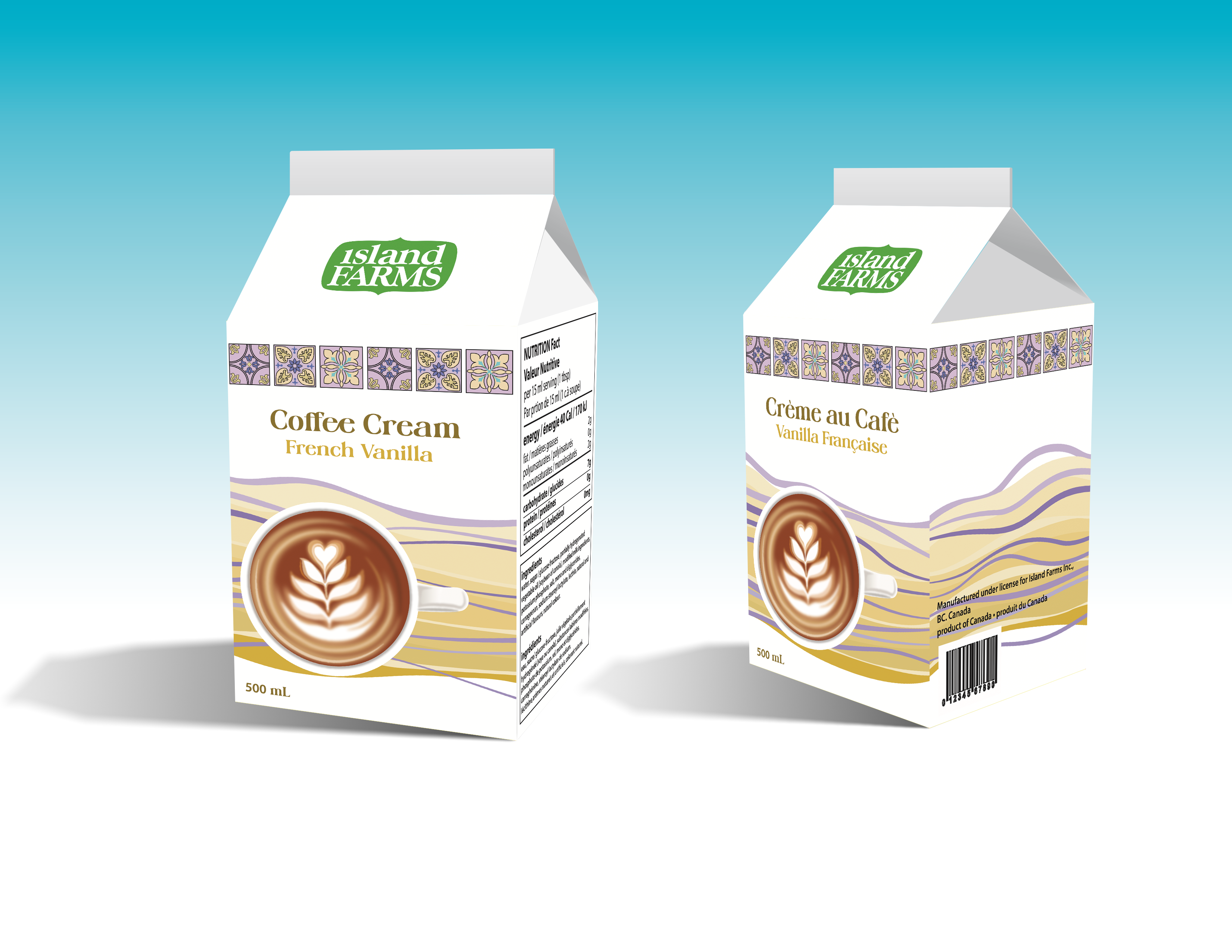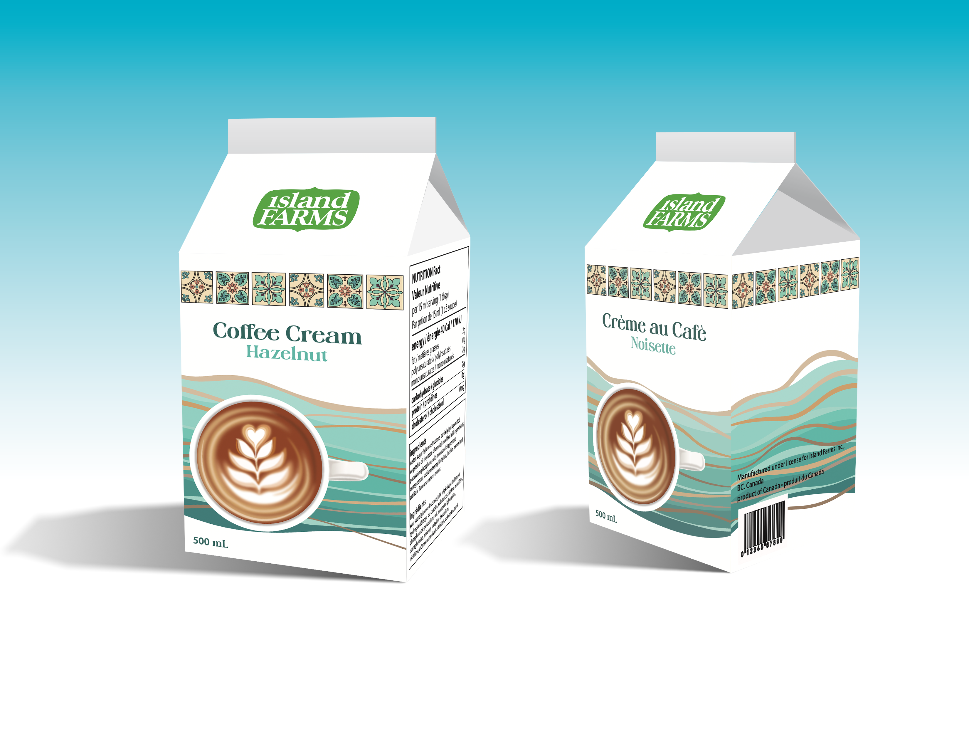 VIDA AKEF PACKAGING & VEHICLE WRAP MOCKUP 1 Packaging design for a hazelnut-flavored coffee creamer. MOCKUP 2 Packaging design for a French Vanilla-flavored coffee creamer. MOCKUP 3 Packaging design for an Amaretto-flavored coffee creamer. MOCKUP 4 Packaging design for an Irish Cream-flavored coffee creamer.